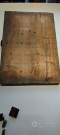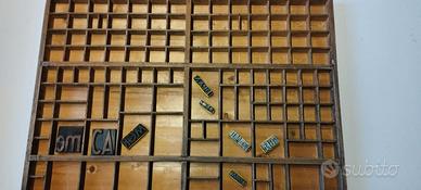 Cassetto dei caratteri tipografici originale del 1900, con lettere in piombo e in legno di una tipografia centenaria.