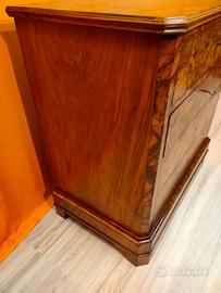 DESCRIZIONE DEL MOBILE : Particolare cassettoncino lastronato frontalmente in radica di noce epoca seconda metà del 1800 stile Napoleone III di provenienza piemontese.