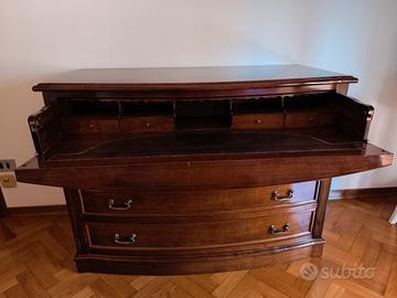 il cassettone ha una ribaltina che nasconde piccoli vani e alcuni cassettini.