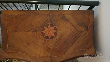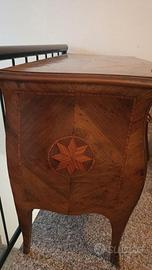 cassettone stile 700 napoletano, legno intarsiato, forma bombata, buone condizioni, necessità di pochi interventi per reinserire piccolissimi tasselli (disponibili).