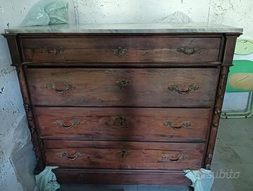 Cassettone antico (seconda metà dell' 800), in legno massello, con piano di marmo carrara. Da restaurare.