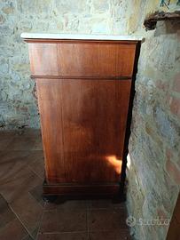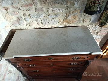 Vendo cassettone in legno massello con piano originale in marmo, stile antico/rustico. Mobile di ottima qualità, con lavorazioni decorative sul frontale e ferramenta originale. Struttura solida e robusta, cassetti ampi e capienti. Ideale per arredamenti classici, casali, agriturismi o ambienti vintage. Misure: 118 x109 x 54 📍 Ritiro a mano zona Perugia