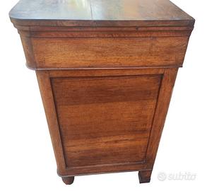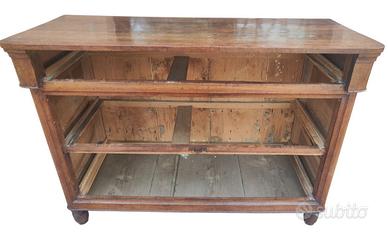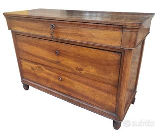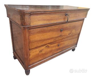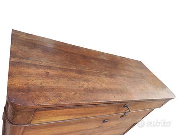 Integro ed autentico cassettone Carlo X a due cassetti e mezzo in noce massello, costruito in ambito Emiliano nella prima metà del XIX secolo, espressione della sobria eleganza tipica del periodo.