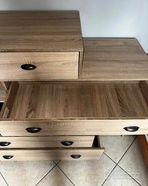 Cassettone Conforama. vendesi per trasloco. Lungo 155, profondo 55 a cassetti chiusi, alto 105. Leggera imperfezione lato destro causata da spostamento. Vedi ultima foto.