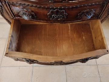 Cassettone comò 3 cassetti in stile barocco Luigi XV realizzato in legno massello con ricche decorazioni intagliate a mano.