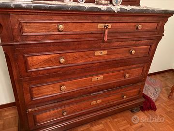 Cassettone comò lombardo metà ottocento con alzata a specchio e ripiano in marmo. Ottime condizioni. 195cmx125cmx60cm