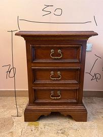 Vendo per trasloco, set di mobili per camera da letto composto da cassettone e due comodini in legno massello. Misure in foto.