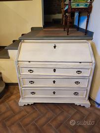Cassettone in legno massello ristrutturato, dotato di ripiano a ribalta apribile che si trasforma in piccola scrivania.