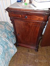 Cassettone fine ottocento, completo di specchiera e coppia di comodini con ripiani in marmo. Disponibili da Maggio 2026.