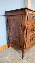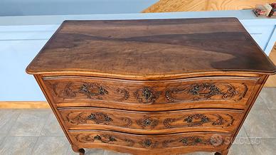 Cassettone Parmigiano della prima metà del Settecendo a 3 cassetti, coperchio in una assa unica di noce, dello stesso materiale è anche il resto del mobile, ad eccezione degli interni che sono in pioppo.
