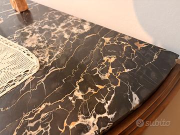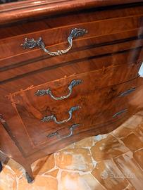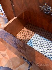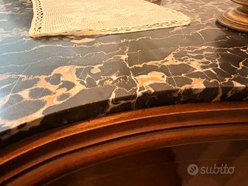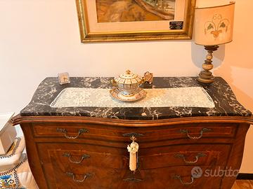Vendo elegante cassettone d’epoca di inizio ’900 in legno lastronato, con linea mossa e raffinati dettagli decorativi. Il mobile presenta: •piano in marmo scuro •4 cassetti molto capienti •ferramenta originale in metallo •intarsi decorativi sul fronte •linea sagomata con gambe mosse, tipica dei mobili d’epoca È un pezzo di grande presenza, adatto a ingresso, soggiorno o camera da letto, perfetto per chi cerca un mobile antico di carattere. Misure circa: •larghezza: 120 cm •profondità: 50 cm •altezza: 100 cm Condizioni: buone in rapporto all’età, con normali segni del tempo e dell’uso, visibili in foto. Interni cassetti presenti e funzionali. 📍 Ritiro a Genova Pegli Disponibile per visione su appuntamento. Trasporto a carico dell’acquirente. Prezzo richiesto: 420 € trattabili