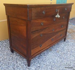 Imponente ed importante cassettone di Transizione Direttorio-Impero, a tre cassetti e mezzo baciati con catene nascoste, realizzato in noce massello di area Emiliana (Parma) e databile al periodo 1790-1805.