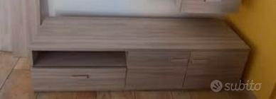 Mobile sala modello Pegaso (vendo cassettone e grande mensola come evidenziati in foto). Misure cassettone con doppie ante e cassetti: 210x 42cm Misure mensola sospesa: 180x25 cm Vendo causa trasloco Ritiro a carico dell'acquirente.