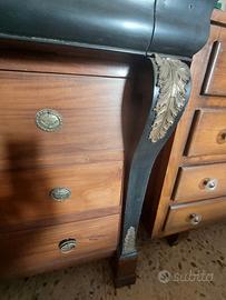 cassettone IMPERO inizio 800 con il piano e i frontali dei cassetti in legno di noce massello, lastronato sui laterali sempre in noce, struttura in rovere massello.