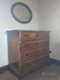 Bellissimo cassettone in legno color miele con ripiano in marmo e piedi anteriori a cipolla. larghezza cm.109 profondità cm.54 altezza cm.120