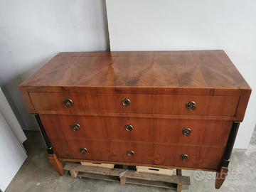 Cassettone in piuma di noce transizione Luigi XVI - Impero 3 cassetti gambe a spillo noce biondo già incartato di probabile origine emiliana.