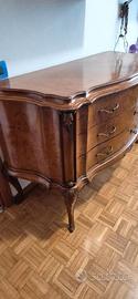 Cassettone d’epoca in stile barocco (Luigi XV), realizzato in radica di noce. Il mobile è dotato di tre ampi cassetti con maniglie in ottone lavorato. 145x60 x90(h) Solo ritiro a mano, Milano o Verona