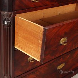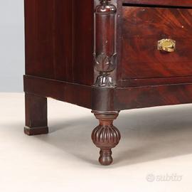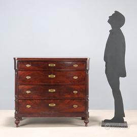 Cassettone Luigi Filippo in mogano. Fronte a quattro cassetti di cui il primo
