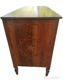 Raro ed elegante cassettone Luigi XVI Emiliano intarsiato, realizzato a Rolo (RE) tra la fine del XVIII e l’inizio del XIX secolo.