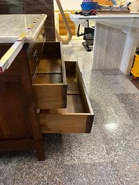 Favoloso cassettone di epoca in castagno a massello. Con Tre cassetti più 1 secretaire. Ripiano in Travertino Romano Levigato.