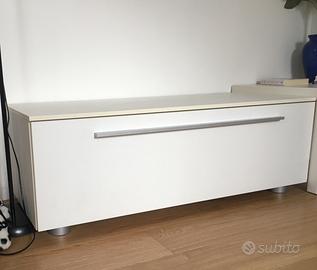 Cassettone con divisione interna in 2. Bianco interno color legno chiaro. Ideale come mobile tv o sottolavabo in bagno Misure 120x50 altezza 42