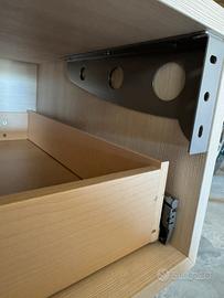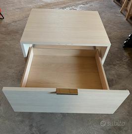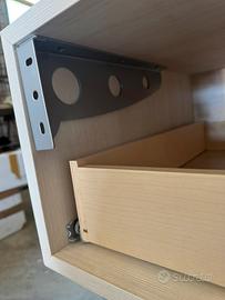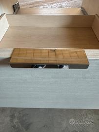 Vendo cassettone contenitore dal design minimale e moderno. Perfetto come comodino sospeso, mobile da ingresso o per il bagno o elemento d'arredo per l'ufficio. Cassettone nuovo mai montato. • Finitura: Legno venato chiaro (effetto rovere sbiancato/grigio). • Dettagli di pregio: Maniglia a profilo metallica integrata e staffe di supporto interne in acciaio con fori di alleggerimento (design industriale). • Funzionalità: Cassetto ad alto spessore con guide metalliche a scomparsa e chiusura ammortizzata (soft-close). Dimesioni: altezza 25,5 cm, profondità 50,5 cm, lunghezza 60,5 cm.