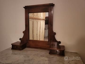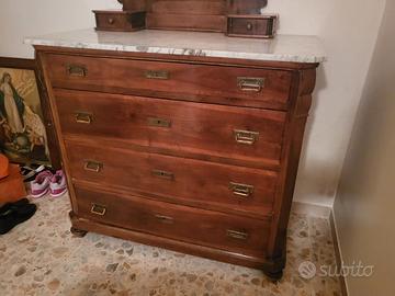 Cassettone toscano della fine dell'800 con piano in marmo bianco di Carrara + psiche-specchiera coeva + coppia di comodini in marmo di Carrara.