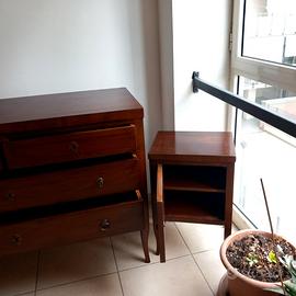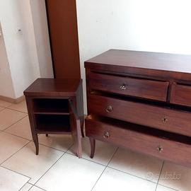 Cassettone vintage + due comodini, produzione artigianato toscano anni '70; ottime condizioni, sempre stati in casa; misure cassettone: larghezza 132cm, profondità 52cm, altezza 95cm; misure comodini: piano 46x35cm alti 69cm.