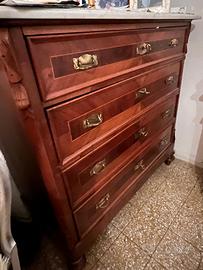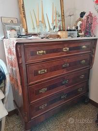 Cassettone vintage impiallacciato noce con piano di marmo, 4 cassetti. Tenuto in ottimo stato. Dimensioni: altezza 112cm, larghezza 118cm, prof. 53cm SOLO RITIRO DELL'OGGETTO - NON SI EFFETTUA SPEDIZIONE (si prega di non fare offerte se impossibilitati al ritiro)