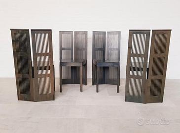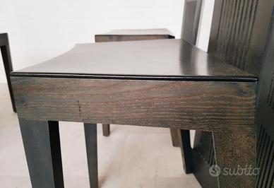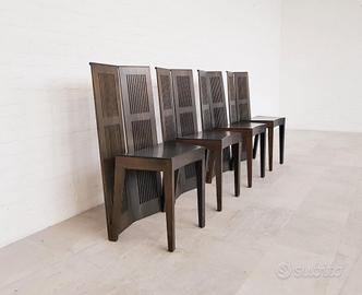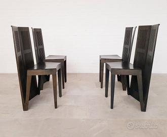 Set di 4 sedute LUBECCA produzione CASSINA 1996. Progetto realizzativo di Andrea BRANZI del 1991, Sedie laccate in marrone e sedute in cuoio nero. Eccellente stato. 6000 euro per il set. Set Non separabile. Ritiro a carico dell'acquirente.