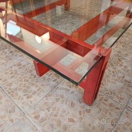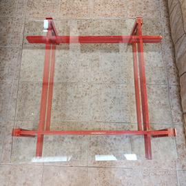 struttura in legno con segni e piano in cristallo 100 x 100 cm in perfette condizioni