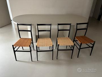 4 sedie vintage, ma in condizioni perfette, appena rilaccate e con midollino impeccabile (2 su 4 rifatte insieme alla laccatura). Design Gio Ponti mid century