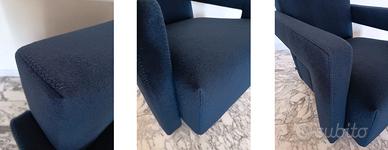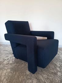 CASSINA MERAVIGLIOSA poltrona Utrecht 637 NUOVA, by Gerrit Thomas Rietveld in morbidissima Lana KVDRADT BLU 13L. Dalla elevata qualità estetica e raffinatezza Tattile. Struttura in acciaio e rivestimento con impuntura a punta di cavallo con filatura naturale. Struttura: Telaio portante sedile e schienale in tubolare di acciaio dotato di cinghie elastiche. Rivestimento: cucitura a Punta di cavallo.