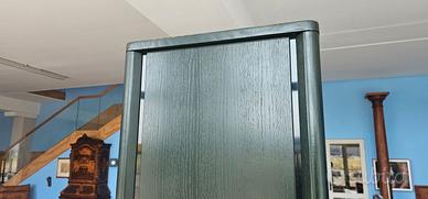 Splendido set di tre vetrine da centro modello "Brera" disegnato da Piero De Martini per Cassina nel 1982,rovere laccato verde