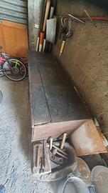 Lunghezza 2mt, larghezza 65cm, altezza 70 cm, cassone in legno noce con serratura e chiave.