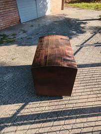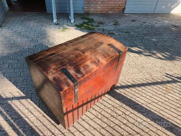 Bellissimo cassone in legno antico fatto a mano. Ha le ruote sotto. Ben conservato sia internamente che esternamente.