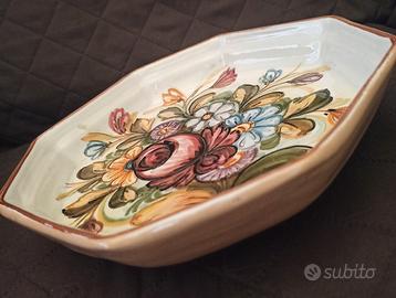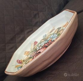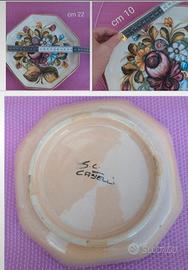 piatto Ottagonale CASTELLI ceramiche 100% made in Italy disegno intarsiato dipinto a mano perfettamente integro