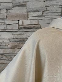 La casula è realizzata con un bel tessuto oro chiaro effetto lurex. Il tessuto utilizzato per la confezione è di ottima qualità e segue i movimenti del corpo in modo fluido. È facile da stirare e mantiene bene la forma, senza stropicciarsi.