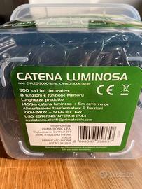 NR.300 LUCI LED LUCE BIANCA 8 FUNZIONI 14,95MT CATENA LINOSA + 5 MT CAVO VERDE PER USO ESTERNO/INTERNO IP44