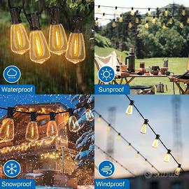 RESISTENTI ALLE INTEMPERIE E DUREVOLI: le lampadine in stile Edison delle luci a catena sono dotate di un alloggiamento del cavo standard e il cavo migliorato per carichi pesanti può resistere all'usura all'interno e all'esterno. L'isolamento protegge il filo dalle calde giornate invernali, dal sole, dal vento, dalla pioggia, dalla neve e dall'umidità.