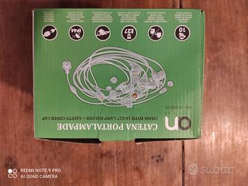 Catena portalampada da 10 lampadine non incluse,da esterno /interno da 10 metri Attacco E27 con chiusura sicurezza