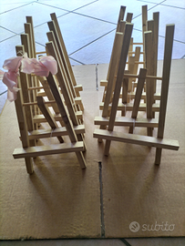 Dieci Cavalletti in legno ideali come porta menù per lista di invitati battesimi cresime comunione matrimoni e per tutte quelle occasione che serve descrivere qualcosa misure cm 18x30 profondità 10