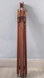 Vendesi Cavalletto treppiede per Pittura/Esposizione, salva spazio, in legno di faggio con altezza e angolazione regolabile, design pieghevole, utilizzo versatile. DIMENSIONI: 93L x 84P x 183A cm. La struttura può reggere tele fino a circa 107 cm. di altezza.
