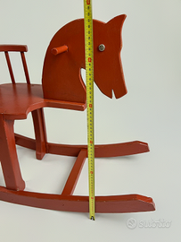 Vendo cavallo a dondolo in legno verniciato rosso, utilizzato come oggetto scenico per servizi fotografici natalizi.