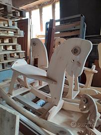 Cavallo a dondolo artigianale di varie misure e legni diversi pochi pezzi disponibili ultime foto in lavorazione