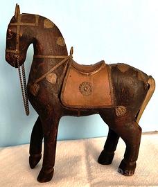 Vendo scultura vintage di cavallo MARWARI INDIANO in legno intarsiato a mano e decorato con inserti in metallo, esempio di artigianato popolare tipica del Rajasthan, in India, spesso ricercate nel modernariato e nel collezionismo etnico, come da foto. Altezza 27 cm., largh. 23 cm. Il luogo di vendita è Viareggio (LU). La richiesta è di 50,00 €. Possibilità di spedizione. Pagamento con bonifico bancario o PayPal.