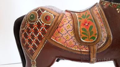 Cavallo ligneo antico finemente decorato
