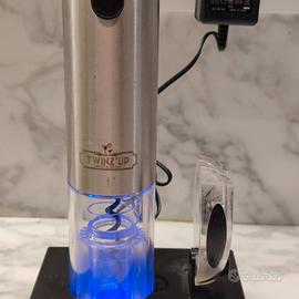 cavatappi elettrico Twinz'up con base ricaricabile luce blu e accessorio tagliatappo