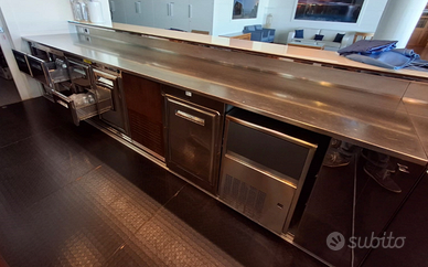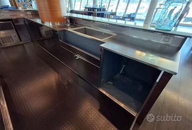 Bancone bar a “L”, con banco frigo e postazione lavello, misure in foto