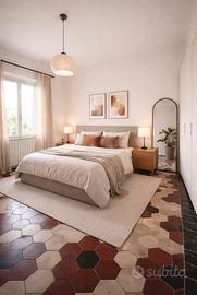Vendesi splendido pavimento d’epoca originale in cementine esagonali risalenti ai primi del Novecento, rimosse da una camera di circa 16 mq. Il lotto è composto dai classici esagoni bicolore (rosso antico e beige) con cuore scuro, completi della loro bordura perimetrale nera originale (pezzi rettangolari visibili in foto), molto rara da trovare integra. Dettagli tecnici: • Quantità: circa 16 metri quadrati. • Stato: Ottimo stato di conservazione, superficie integra senza crepe profonde. • Condizioni di vendita: Le mattonelle vengono fornite già smontate con cura (non dovrete occuparvi della rimozione). • Pulizia: Il retro conserva residui di malta d'epoca, facilmente asportabili per la nuova posa. Perfette per ristrutturazioni di pregio, casali, o per creare tappeti decorativi in ambienti moderni. Scrivimi in privato prima dell’acquisto.